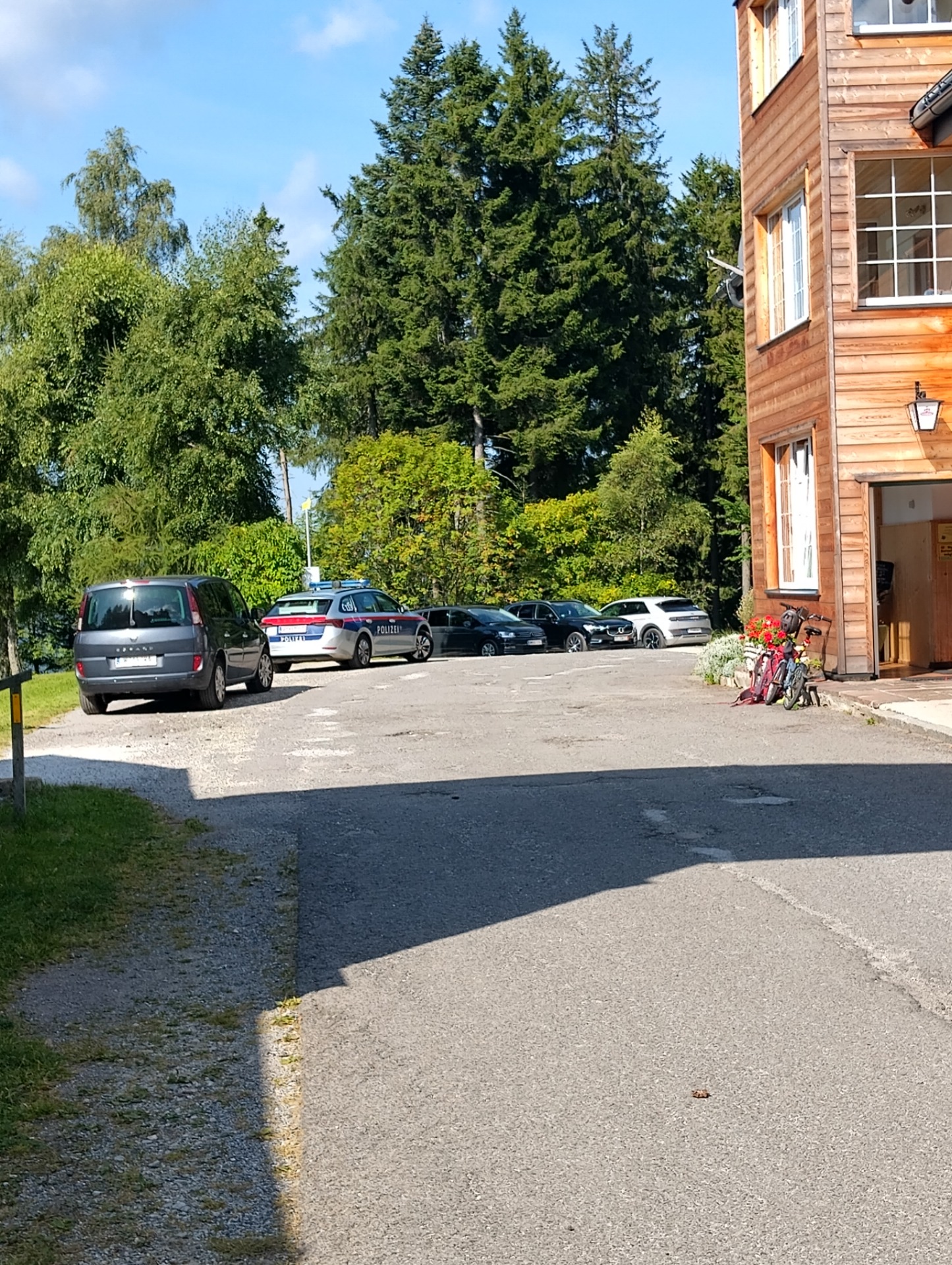Akonáhle akcia trvala dlhšie ako nám povedali a mali sme zablokovaný prístup do domu aj výjazd z domu smerom na jednu stranu, tak sme volali najprv hliadku v Ratten. Mali sme podozrenie, že zrejme ich človek, policajt, ktorý to azda tu u našich susedov bol viackrát na kávičke, účelovo klamal o povolení akcie. Dokonca navádzal, aby sme sa zúčastnili nelegálnej akcie, následný telefonát na Kindberg však potvrdil, že akcia nebola vôbec povolená a vedelo sa len o Bergmesse – takže omši.